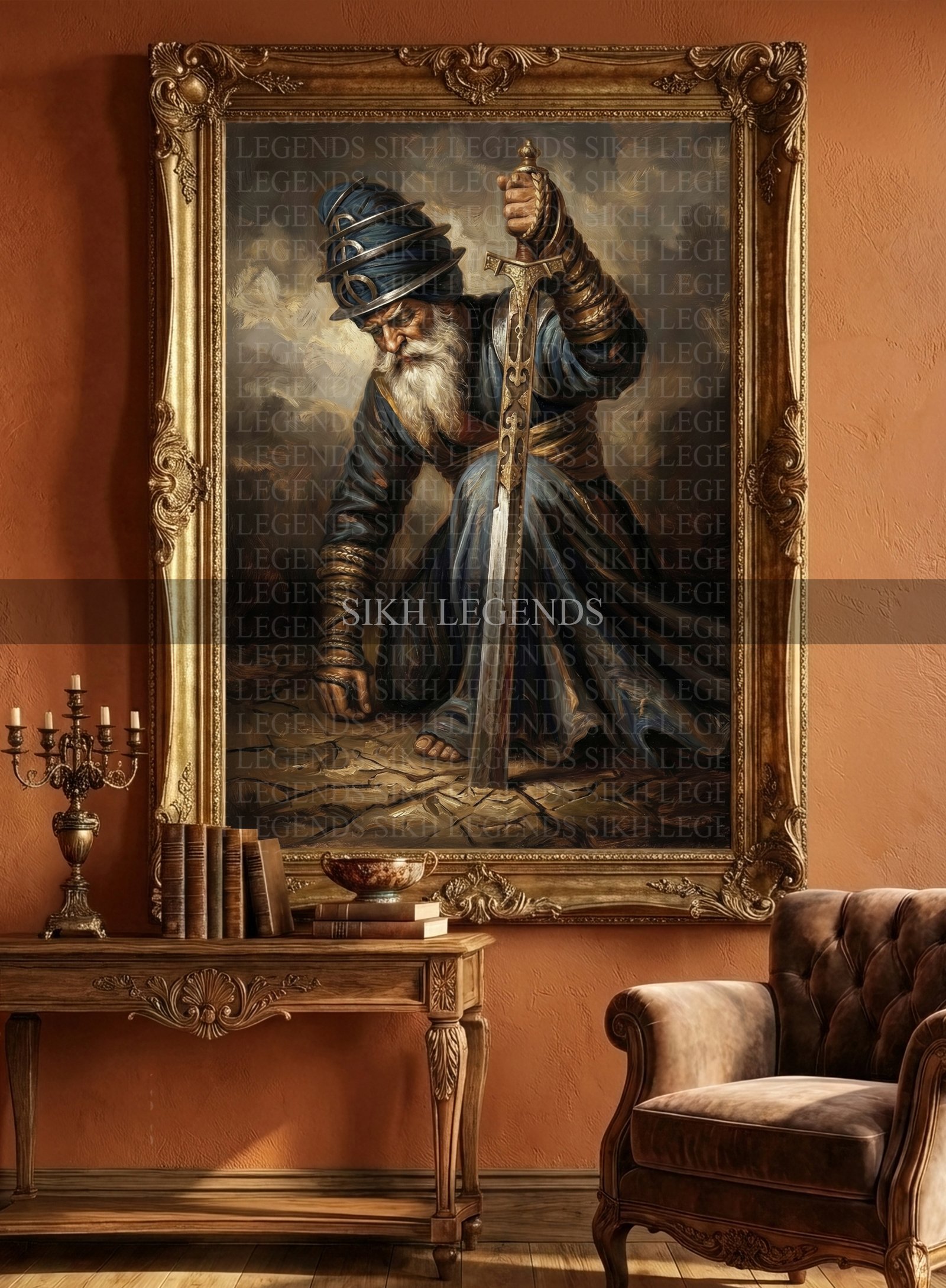 Although Baba Deep Singh Ji was seventy-five years old, he still had the strength of a young warrior. He gathered a large group of Sikhs and advanced towards Sir Harimander Sahib. By the time they reached the village of Tern Taran, about ten miles from Amritsar, their numbers had risen to about five thousand. At this time, Baba Ji drew a line on the ground with his khanda and asked, only those who were willing to fight and die to cross the line.