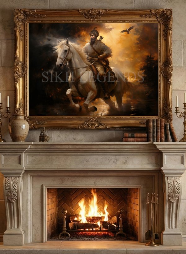 As a presence in the home, this painting serves as a powerful symbol of courage and renewal. It inspires forward motion during moments of uncertainty and reminds the viewer that leadership begins with clarity of purpose. Where the earlier image of stillness offers balance, “First Dawn” offers direction. Together, they reflect the full spectrum of Guru Gobind Singh Ji’s legacy—peace and power, contemplation and action—making this artwork not just visually striking, but spiritually and emotionally grounding for any space