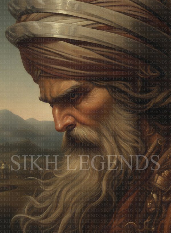 The delicate blend of water colours and pencils, capture the essence of Baba Deep Singh’s indomitable spirit. His determined gaze and iconic flowing beard almost come to life with the bold brushstrokes. The pencil, adds depth revealing intricate patterns and detail. This portrait is not just a depiction of a warrior’s image; it pays homage to a man who embodied the Sikh spirit of resilience.