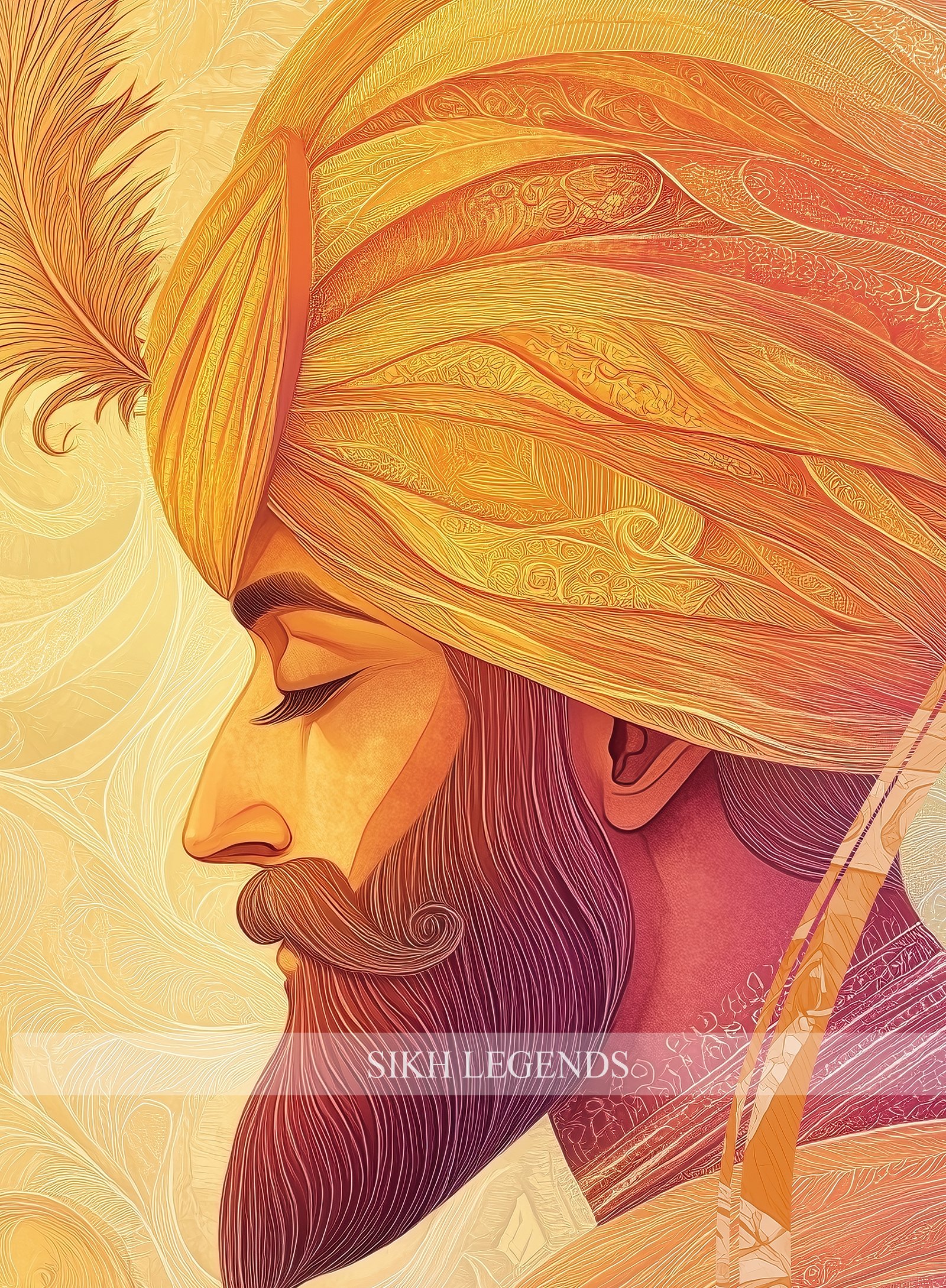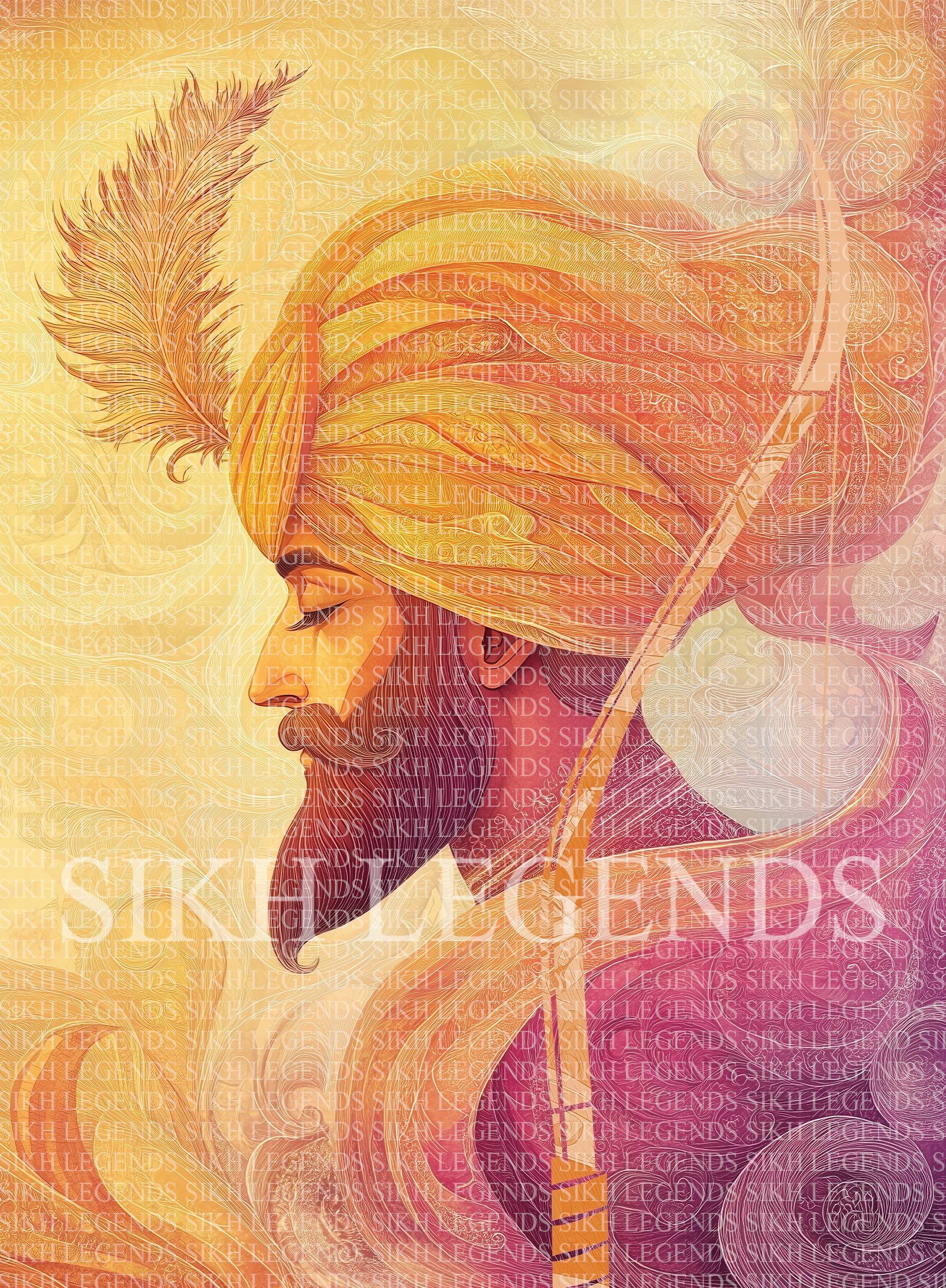 The story behind this portrayal is one of Chardi Kala, capturing the unyielding spirit and eternal optimism that defined the Guru’s life. It visualises the perfect balance of the Sant-Sipahi (Saint-Soldier); it is the gaze of a poet and a protector, a mystic who stands firm in the face of worldly turmoil. The subtle, luminous glow across his features suggests a direct connection to the Divine, a gaze that looks beyond the temporary to see the eternal Truth. It is a visual representation of the courage he instilled in the Khalsa, serving as a silent reminder of the sacrifice and wisdom that shaped history.